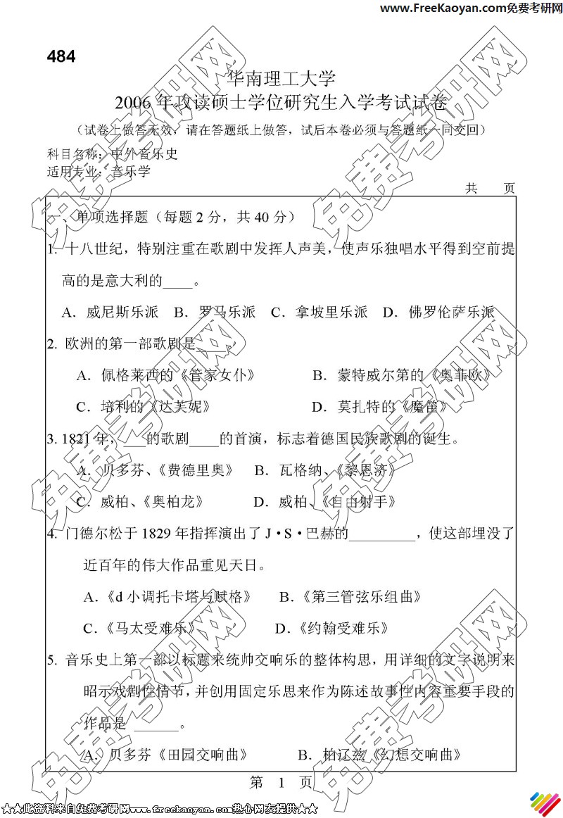 相关话题/半岛在线注册真题 华南理工大学 音乐史 中外