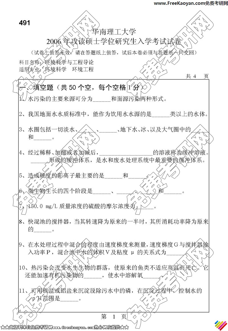 华南理工大学2006年半岛在线注册真题-环境科学与工程导论