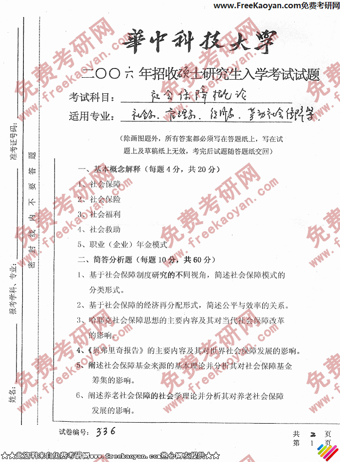 华中科技大学2006年半岛在线注册真题-社会保障概论