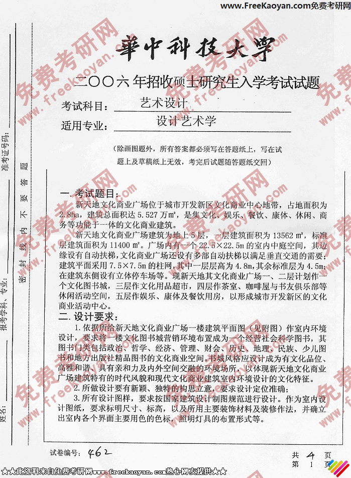 华中科技大学2006年半岛在线注册真题-艺术设计