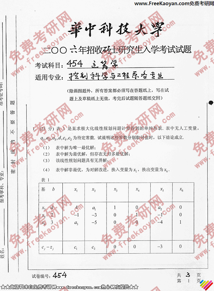 专业课半岛在线注册经验 本站小编 FreeKaoyan 2018-01-22华中科技大学2006年半岛在线注册真题-优化技术