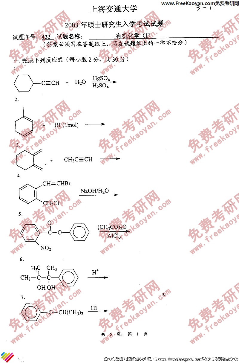 上海交通大学2003年半岛在线注册真题-有机化学(1)