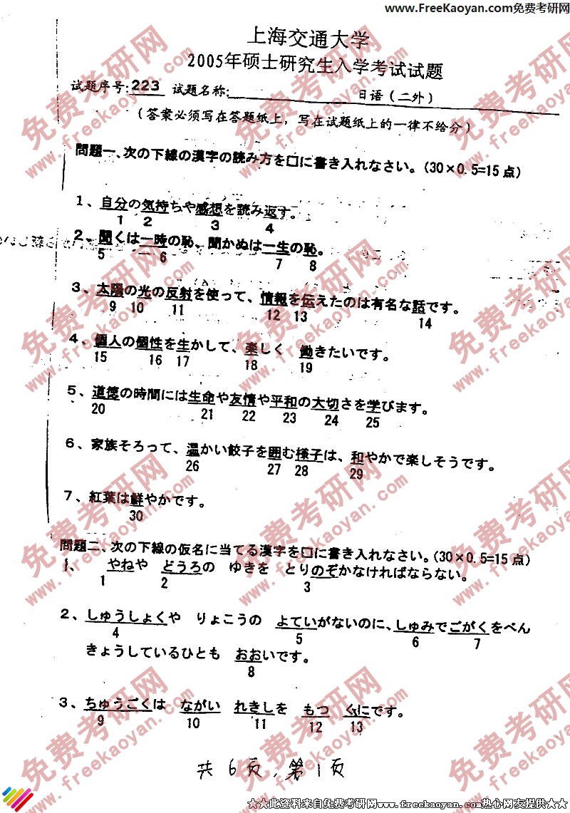 上海交通大学2005年半岛在线注册真题-日语二外
