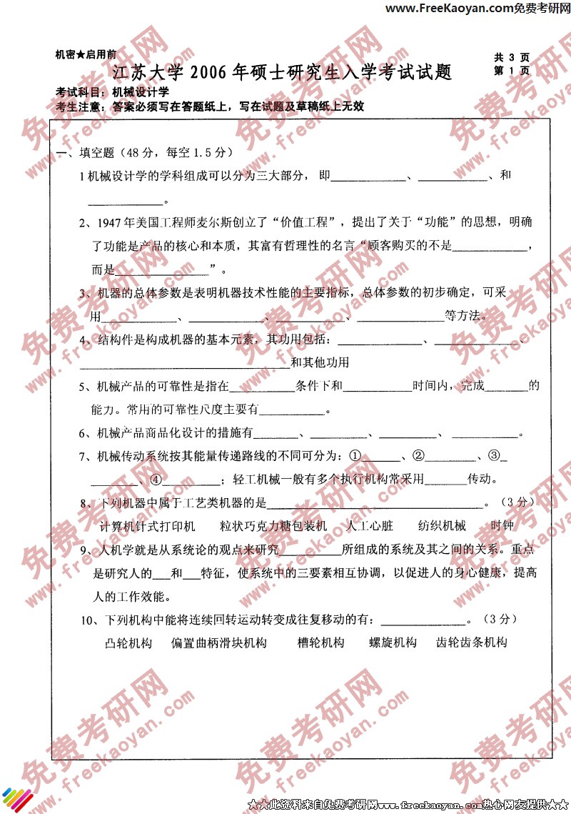 专业课半岛在线注册经验 本站小编 FreeKaoyan 2018-01-22江苏大学2006年半岛在线注册真题-机械设计
