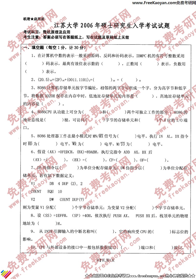 相关话题/江苏大学 半岛在线注册真题 微机原理