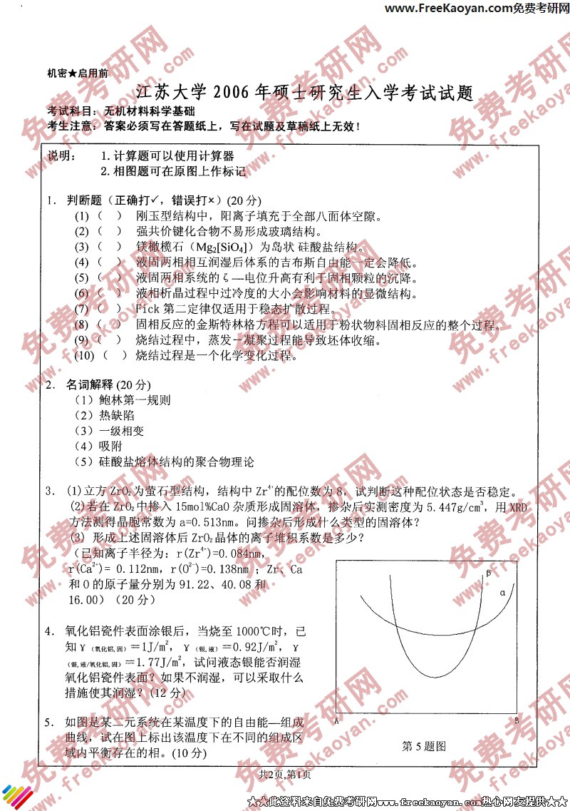 江苏大学2006年半岛在线注册真题-无机材料科学基础