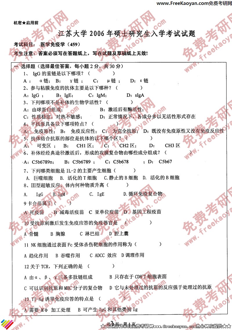 相关话题/半岛在线注册真题 江苏大学 免疫学 医学