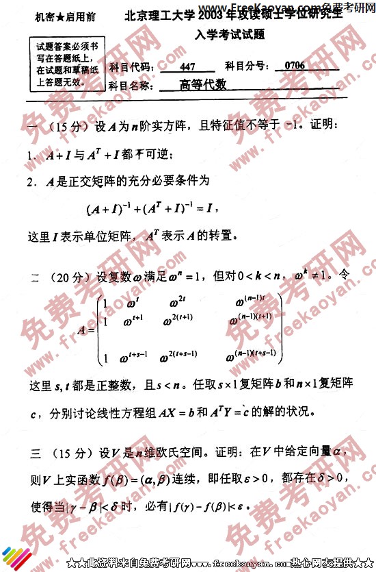 相关话题/北京理工大学 半岛在线注册真题 高等代数