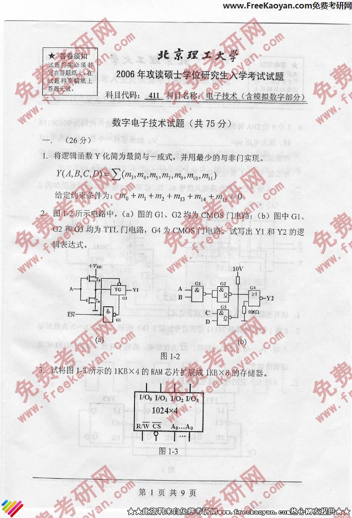 北京理工大学2006年半岛在线注册真题-电子技术