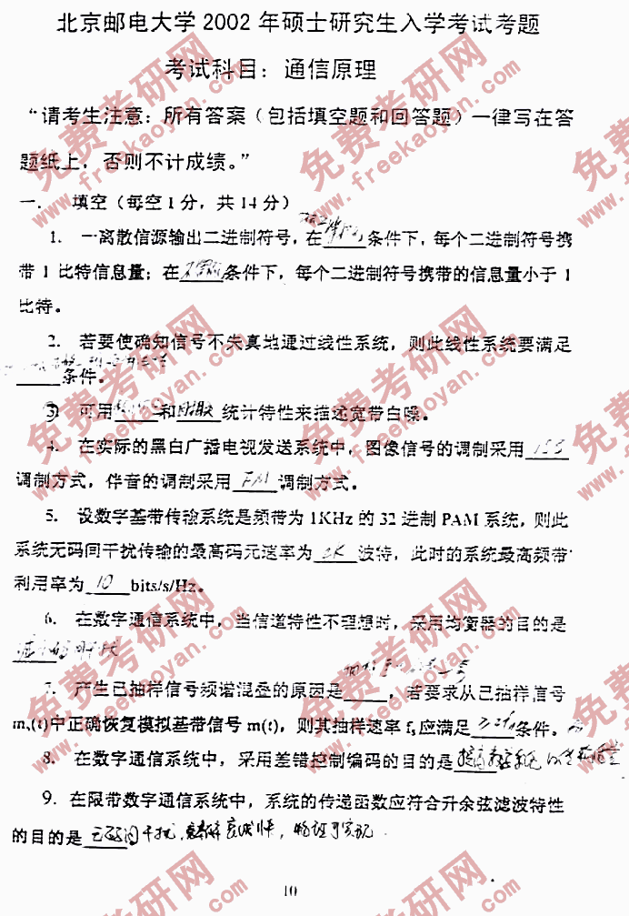 专业课半岛在线注册经验 本站小编 FreeKaoyan 2018-01-22北京邮电大学2000年半岛在线注册真题-通信原理