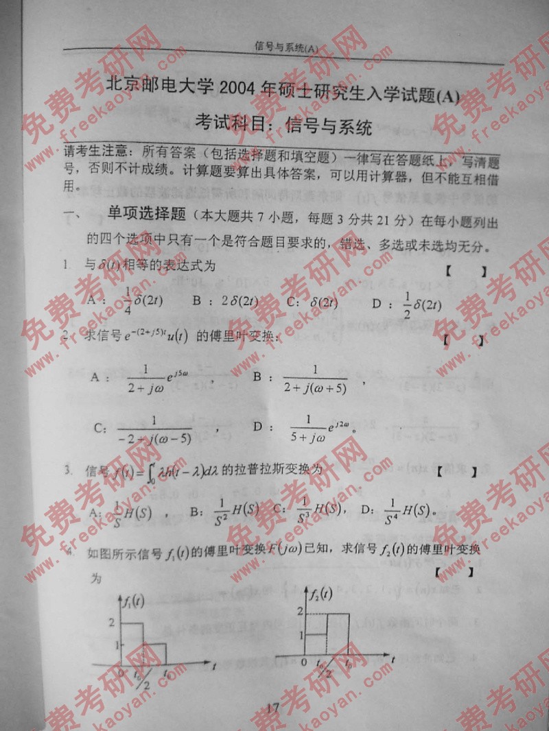 北京邮电大学2004年半岛在线注册真题-信号与系统A