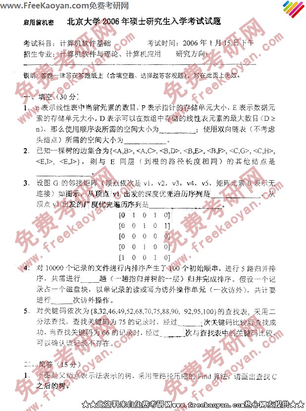 北京大学2006年半岛在线注册真题-计算机软件基础