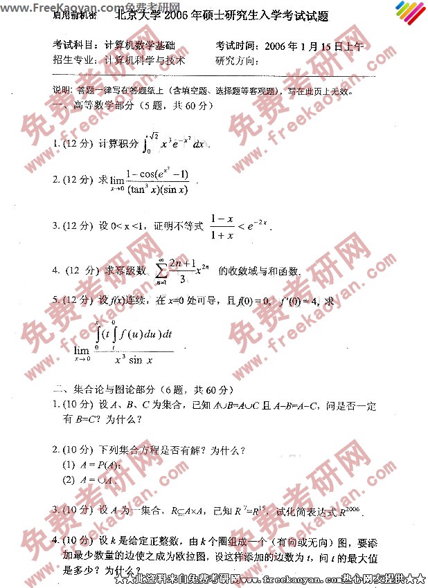北京大学2006年半岛在线注册真题-计算机数学基础