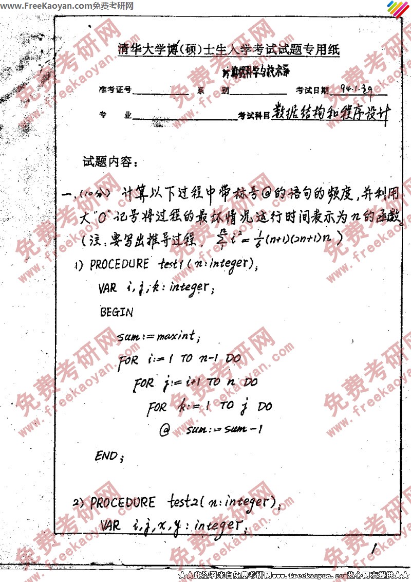 清华大学1994年半岛在线注册真题-计算机半岛在线注册试题