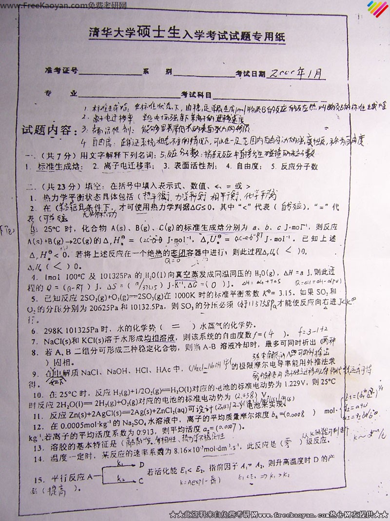 相关话题/清华大学 半岛在线注册真题 物理化学