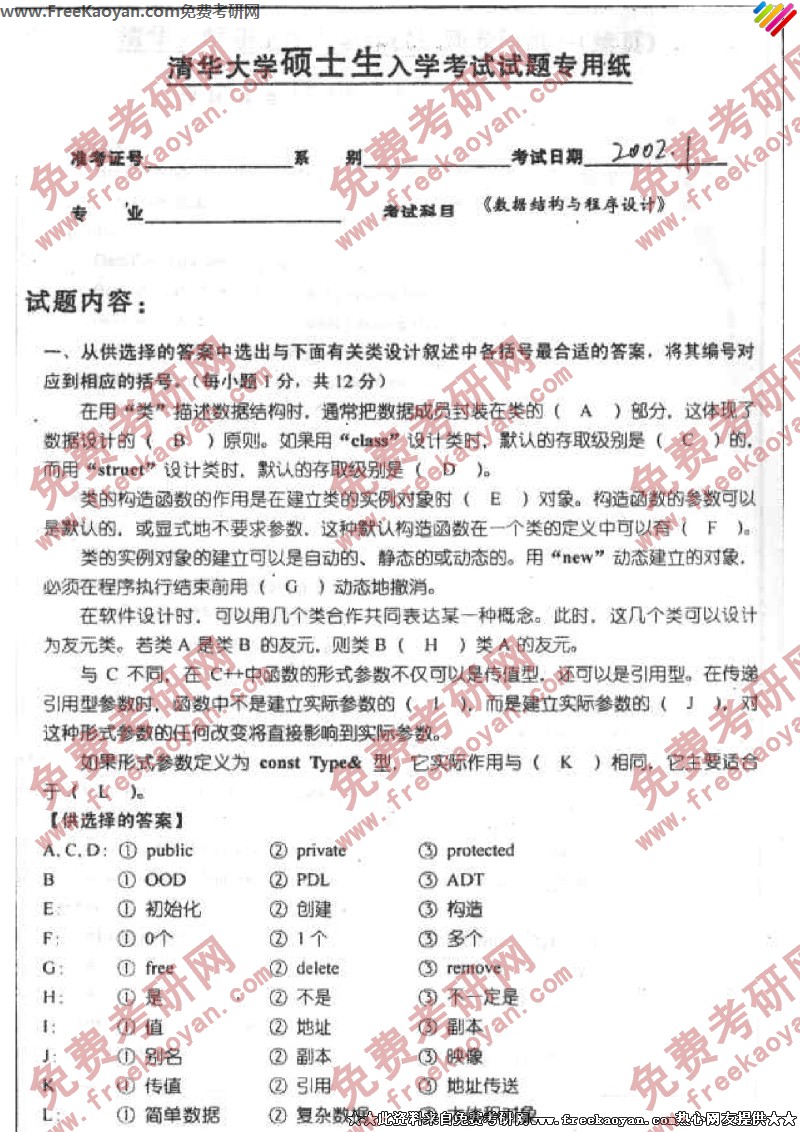 专业课半岛在线注册经验 本站小编 FreeKaoyan 2018-01-22清华大学2000年半岛在线注册真题-数据结构试题与分析