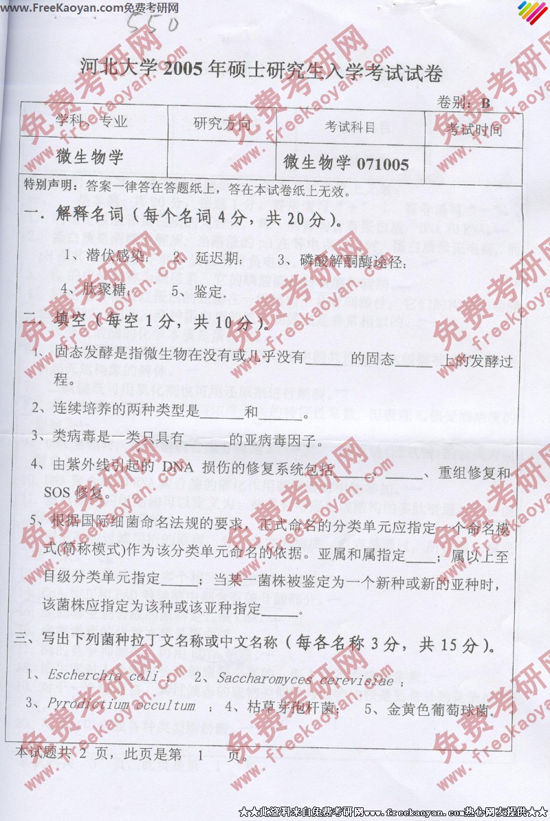 专业课半岛在线注册经验 本站小编 FreeKaoyan 2018-01-23河北大学2005年半岛在线注册真题-普通生物学