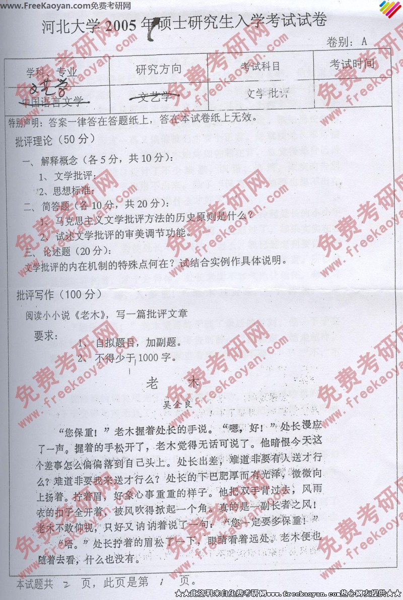 专业课半岛在线注册经验 本站小编 FreeKaoyan 2018-01-23河北大学2005年半岛在线注册真题-文史综合