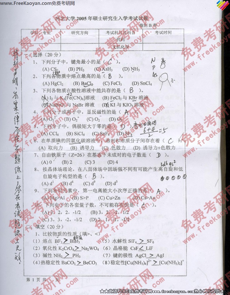 相关话题/河北大学 半岛在线注册真题 无机化学