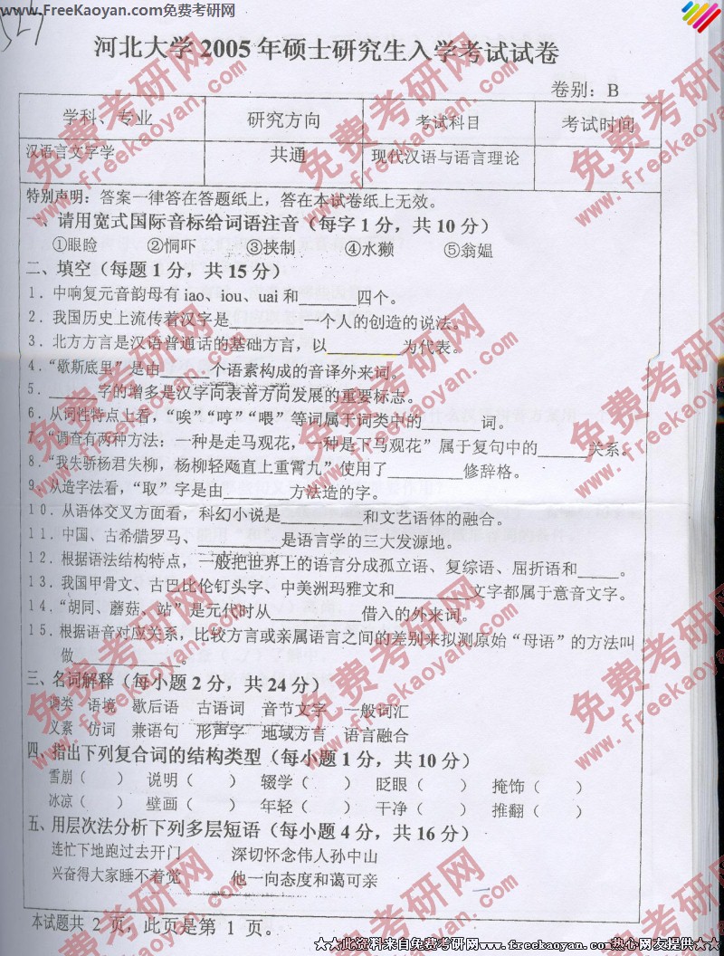 专业课半岛在线注册经验 本站小编 FreeKaoyan 2018-01-23河北大学2005年半岛在线注册真题-文史综合