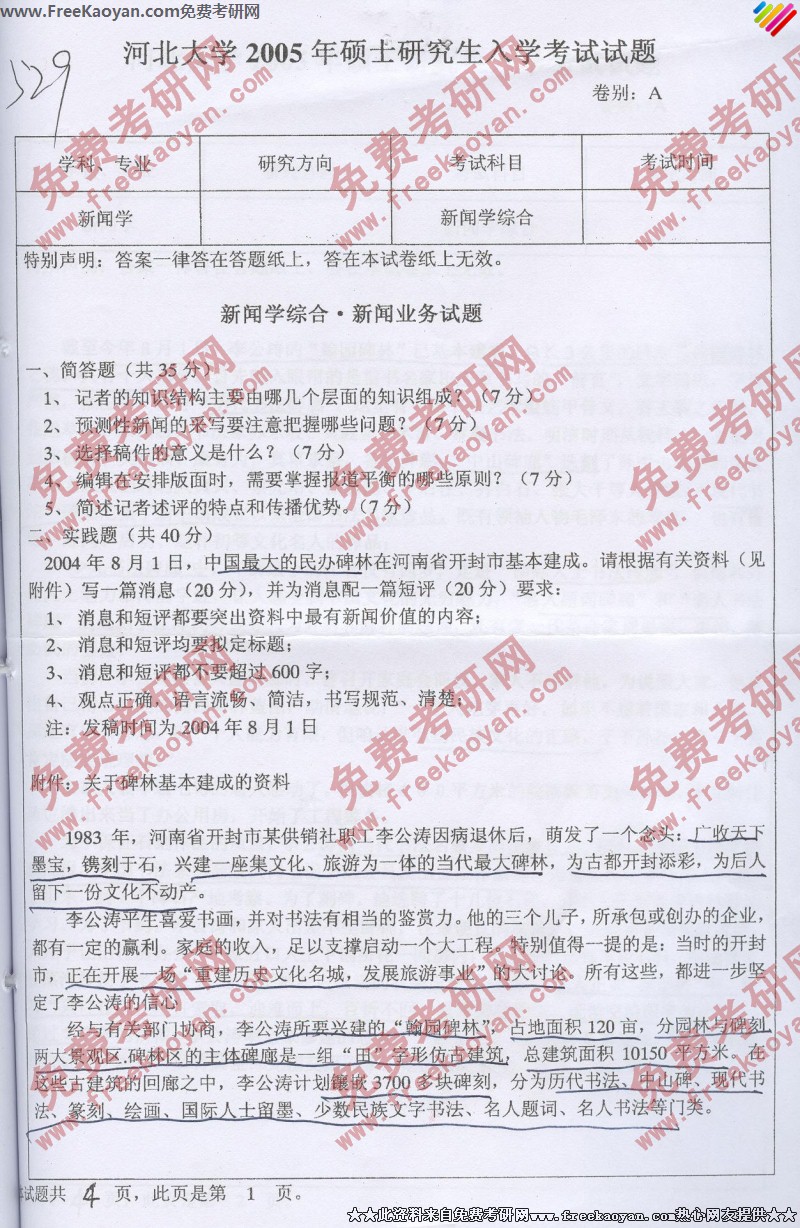 专业课半岛在线注册经验 本站小编 FreeKaoyan 2018-01-23河北大学2005年半岛在线注册真题-文史综合