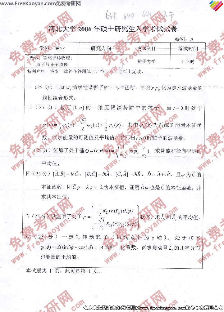 相关话题/河北大学 半岛在线注册真题 量子力学