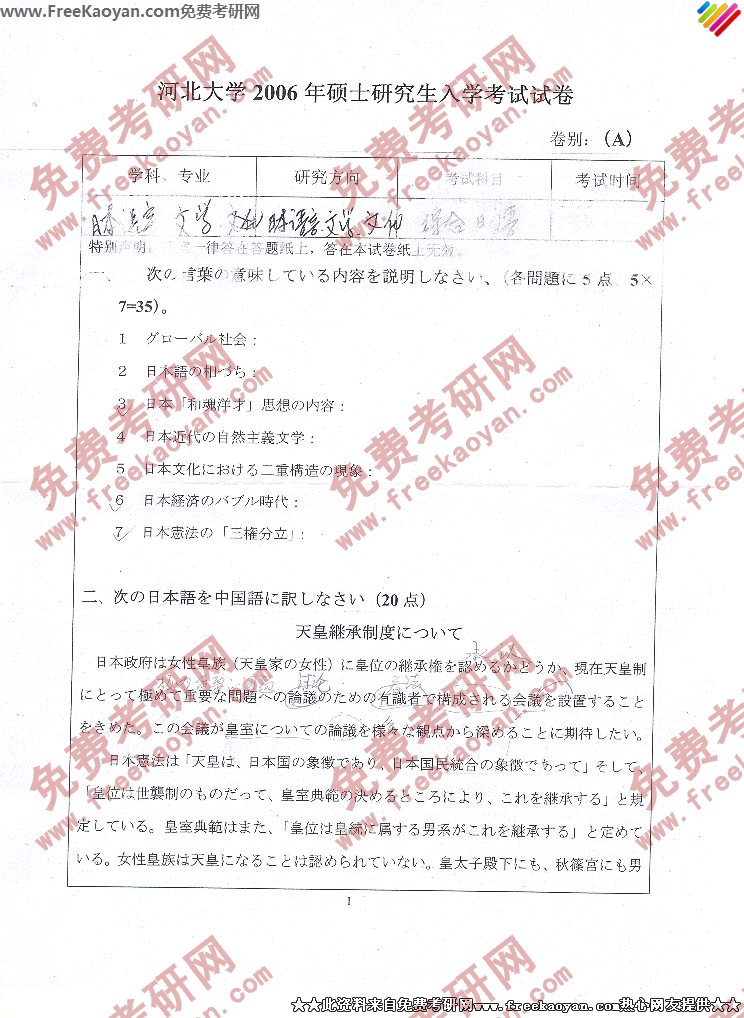 专业课半岛在线注册经验 本站小编 FreeKaoyan 2018-01-23河北大学2006年半岛在线注册真题-中国近现代史-历史综合
