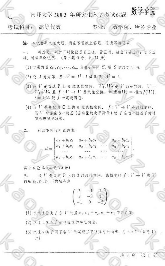 南开大学2003年半岛在线注册真题-高等代数(数学所)