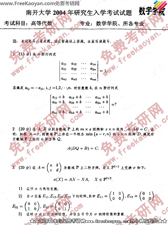 专业课半岛在线注册经验 本站小编 FreeKaoyan 2018-01-23南开大学2003年半岛在线注册真题-高等代数(数学所)