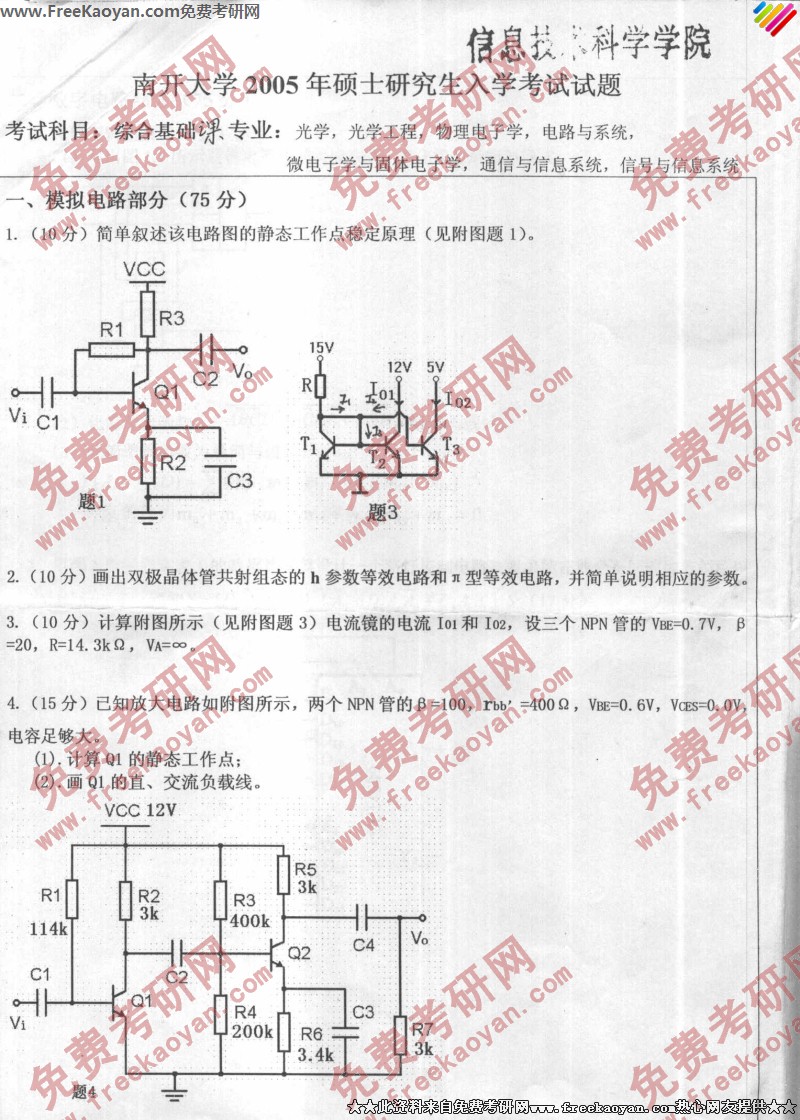 南开大学2005年半岛在线注册真题-信息技术科学学院综合基础课