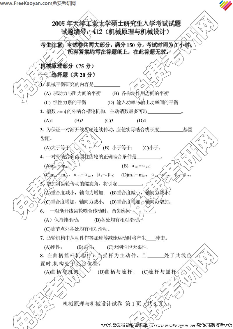 天津工业大学2005年半岛在线注册真题-机械原理与机械设计