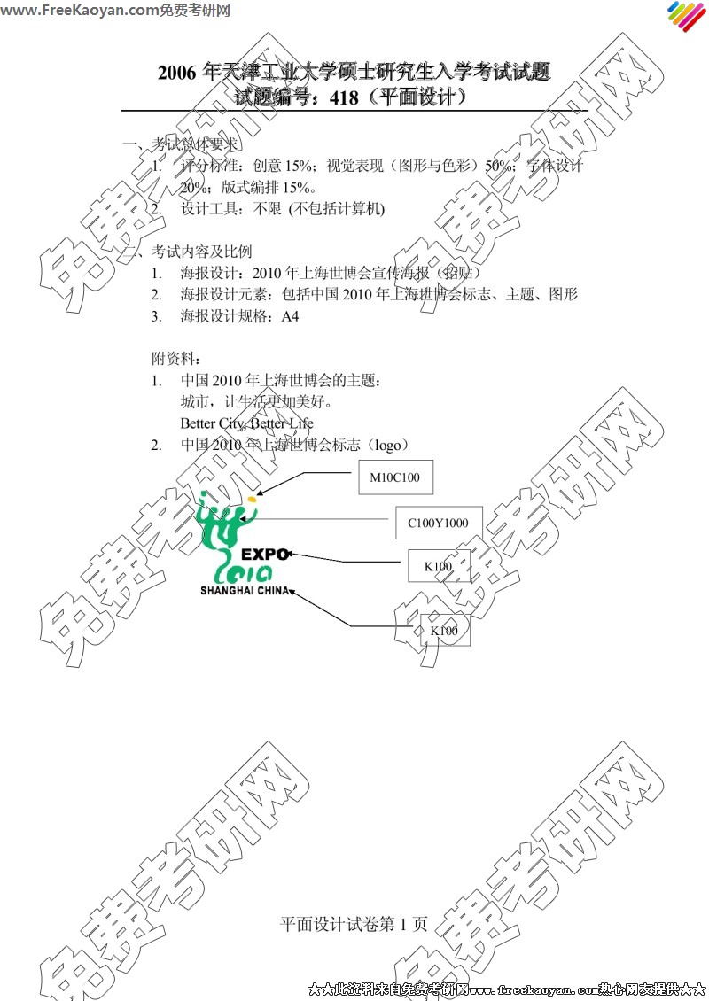 天津工业大学2006年半岛在线注册真题-平面设计(418)