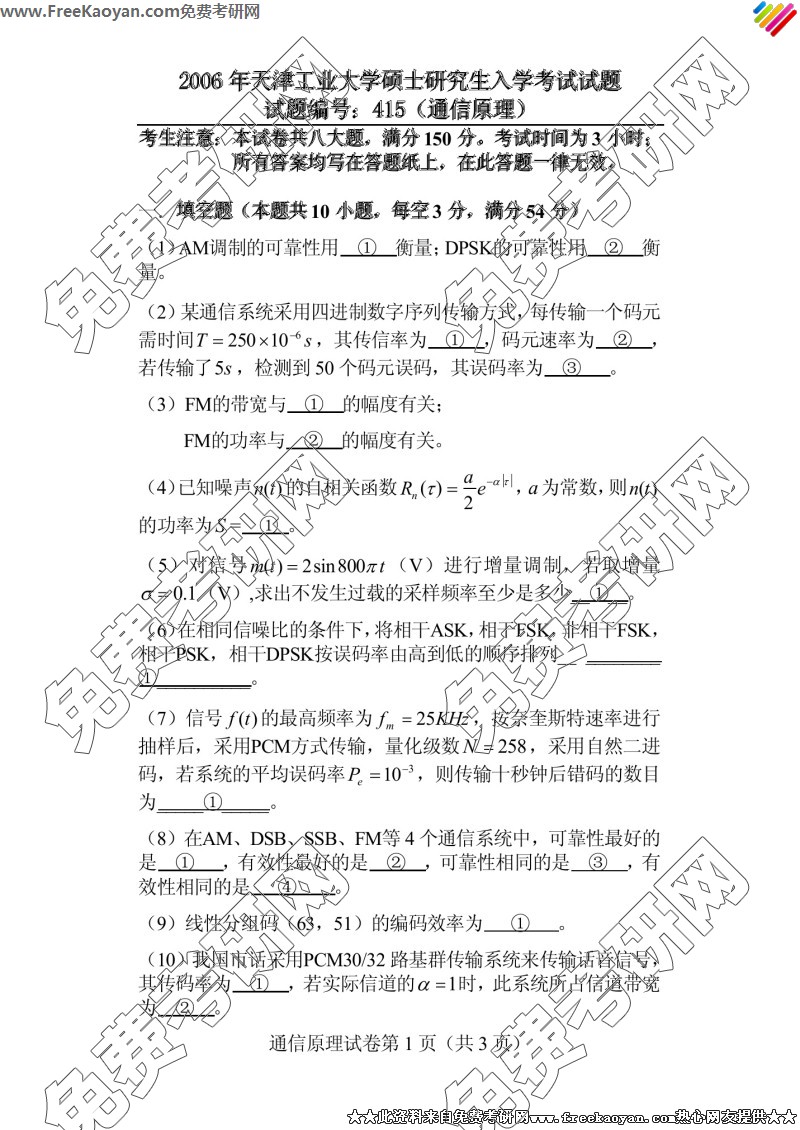 天津工业大学2006年半岛在线注册真题-通信原理(415)