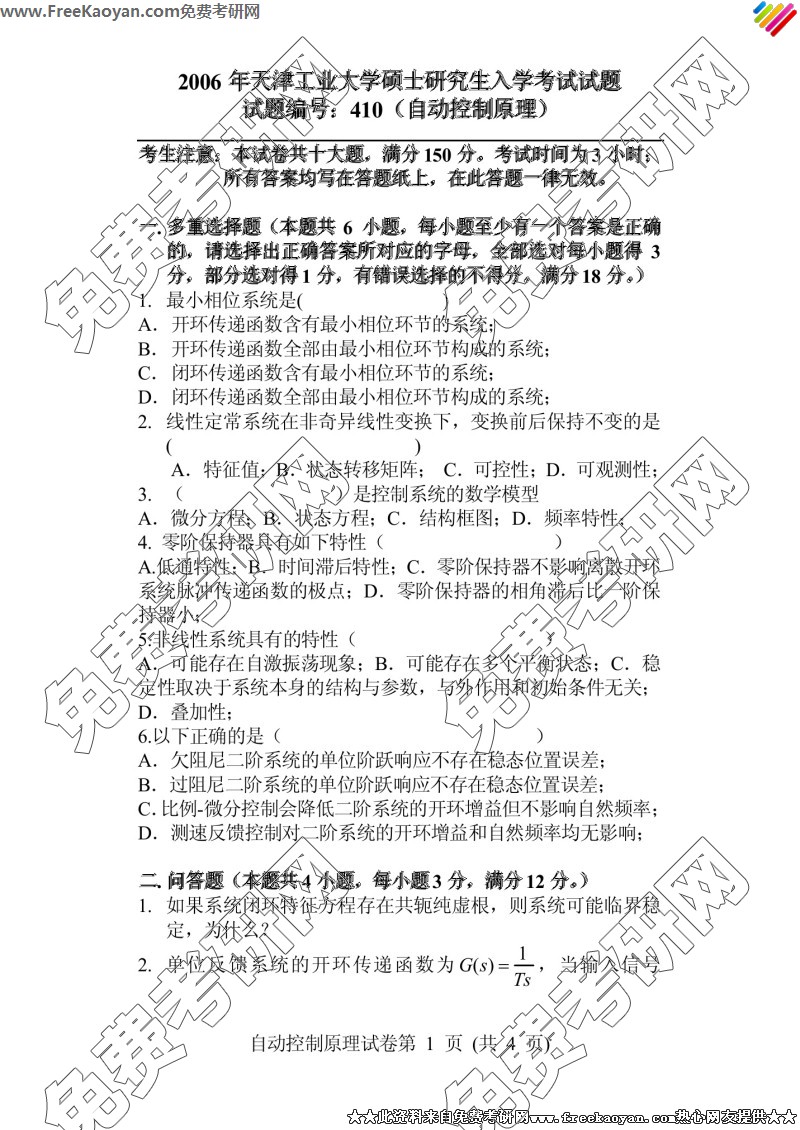 专业课半岛在线注册经验 本站小编 FreeKaoyan 2018-01-23天津工业大学2006年半岛在线注册真题-信号与系统(413)