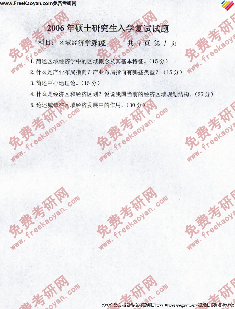 燕山大学2006年半岛在线注册真题-复试区域经济学原理