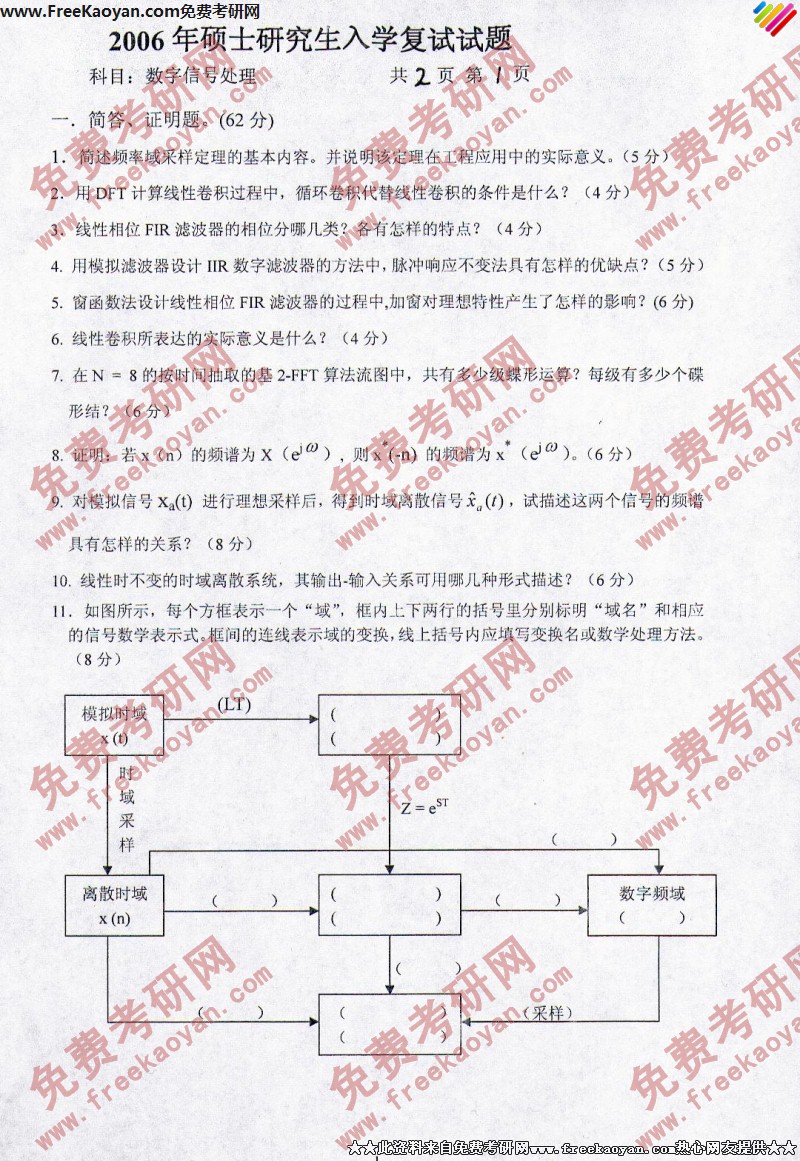 燕山大学2006年半岛在线注册真题-复试数字信号处理