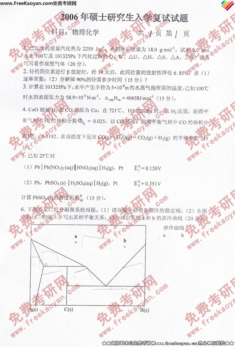 燕山大学2006年半岛在线注册真题-复试物理化学