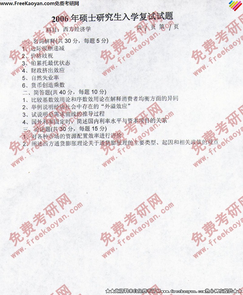 燕山大学2006年半岛在线注册真题-复试西方经济学