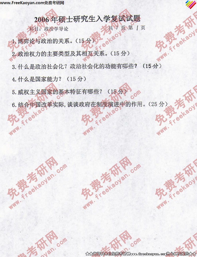 燕山大学2006年半岛在线注册真题-复试政治学导论