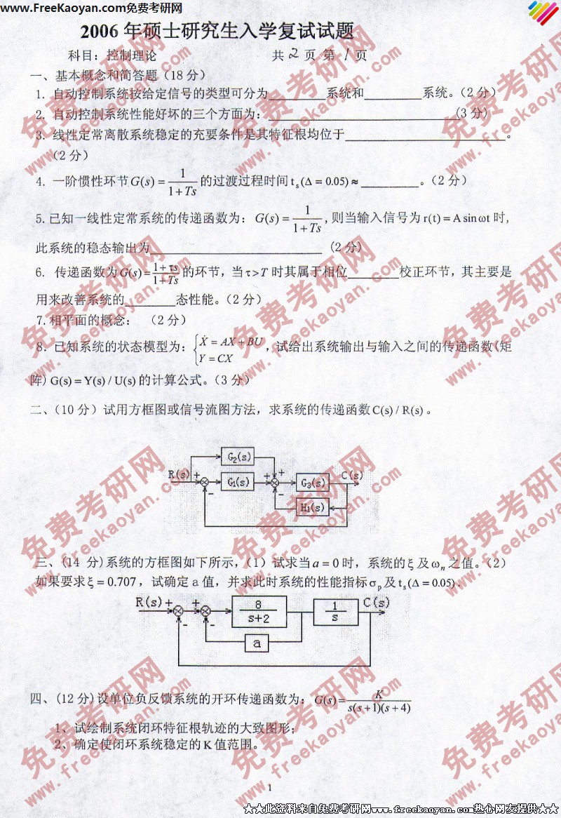 专业课半岛在线注册经验 本站小编 FreeKaoyan 2018-01-23燕山大学2006年半岛在线注册真题-复试数字控制技术
