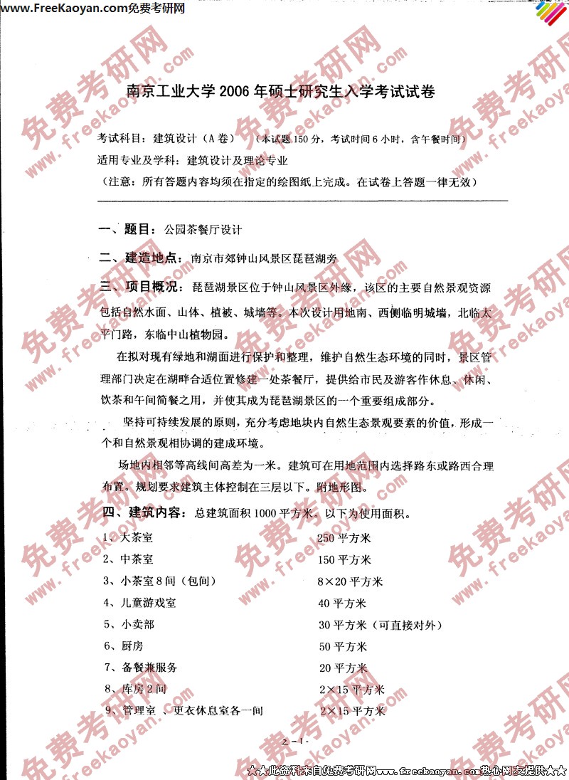 南京工业大学2005年半岛在线注册真题-建筑设计A