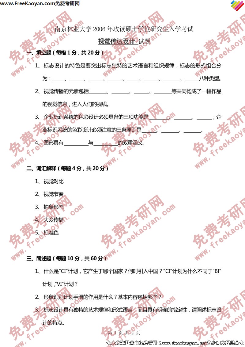 南京林业大学2006年半岛在线注册真题-视觉传达