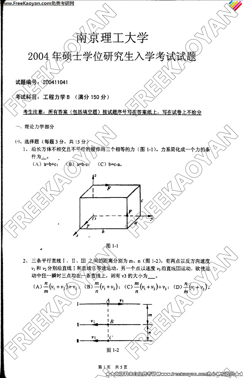 专业课半岛在线注册经验 本站小编 FreeKaoyan 2018-01-23南京理工大学2004年半岛在线注册真题-工程力学(A)