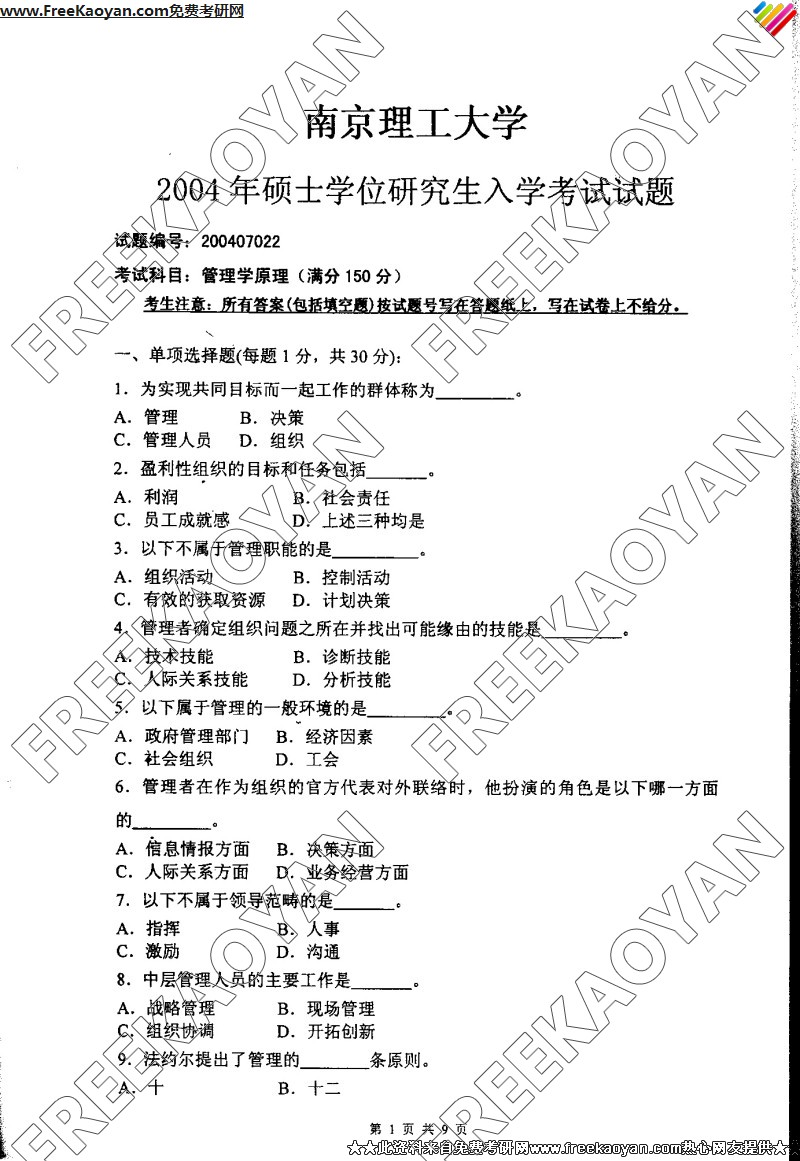 专业课半岛在线注册经验 本站小编 FreeKaoyan 2018-01-23南京理工大学2004年半岛在线注册真题-管理学