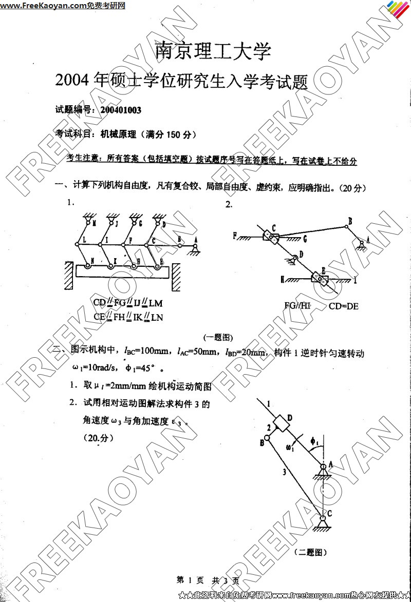 南京理工大学2004年半岛在线注册真题-机械原理