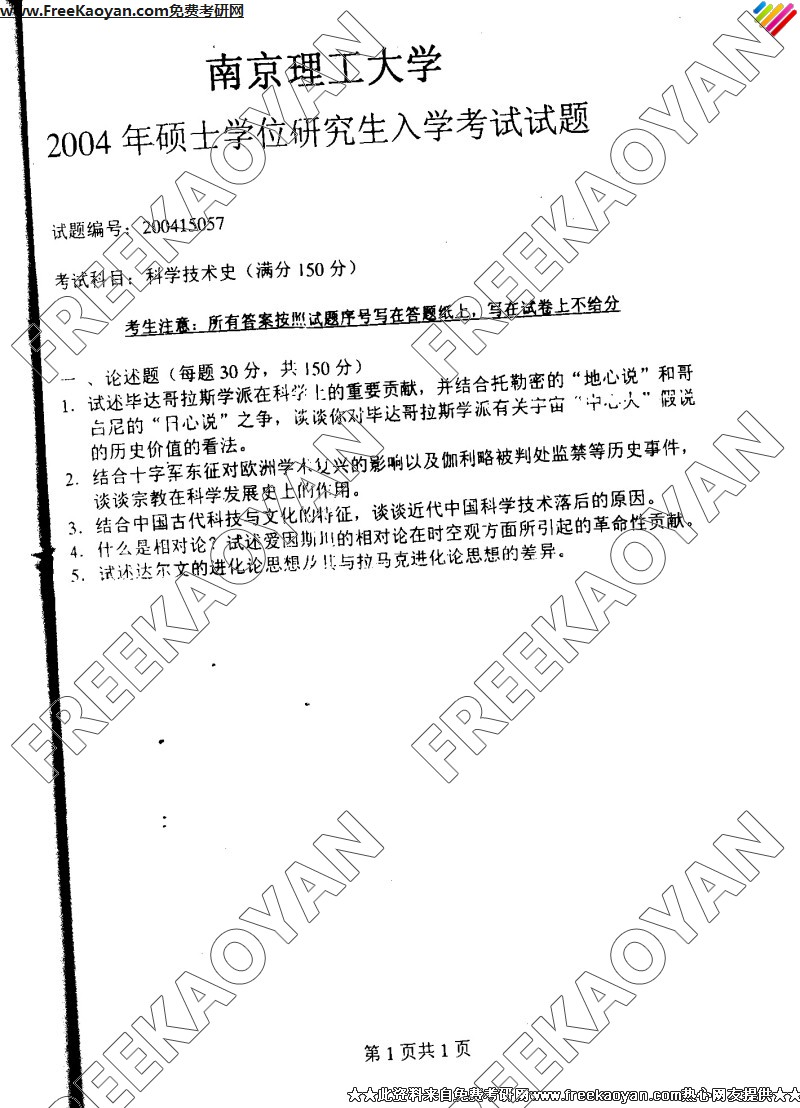 南京理工大学2004年半岛在线注册真题-科学技术史