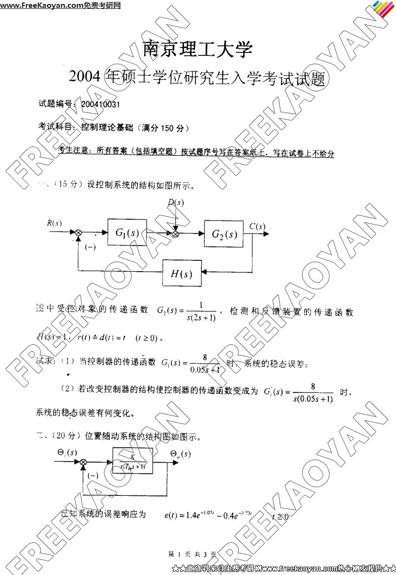 南京理工大学2004年半岛在线注册真题-控制理论基础