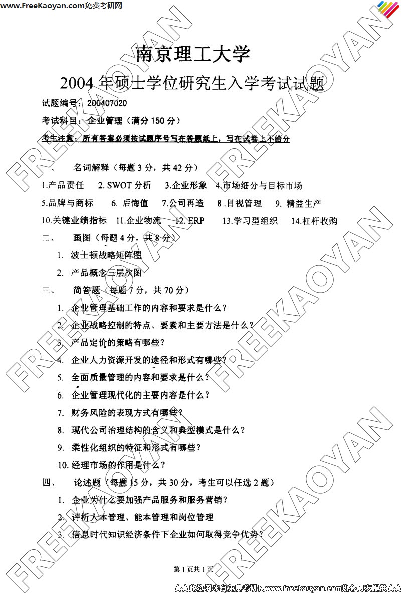 南京理工大学2004年半岛在线注册真题-企业管理