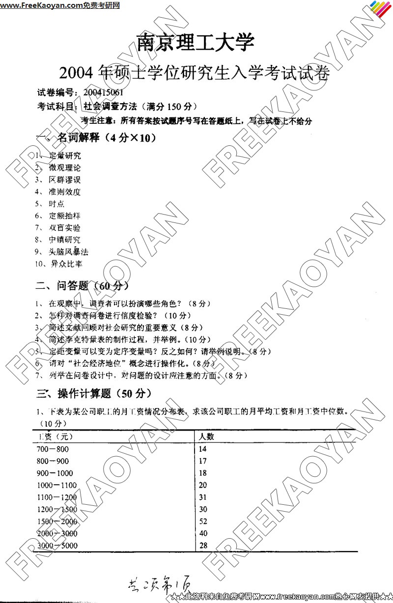 南京理工大学2004年半岛在线注册真题-社会调查方法