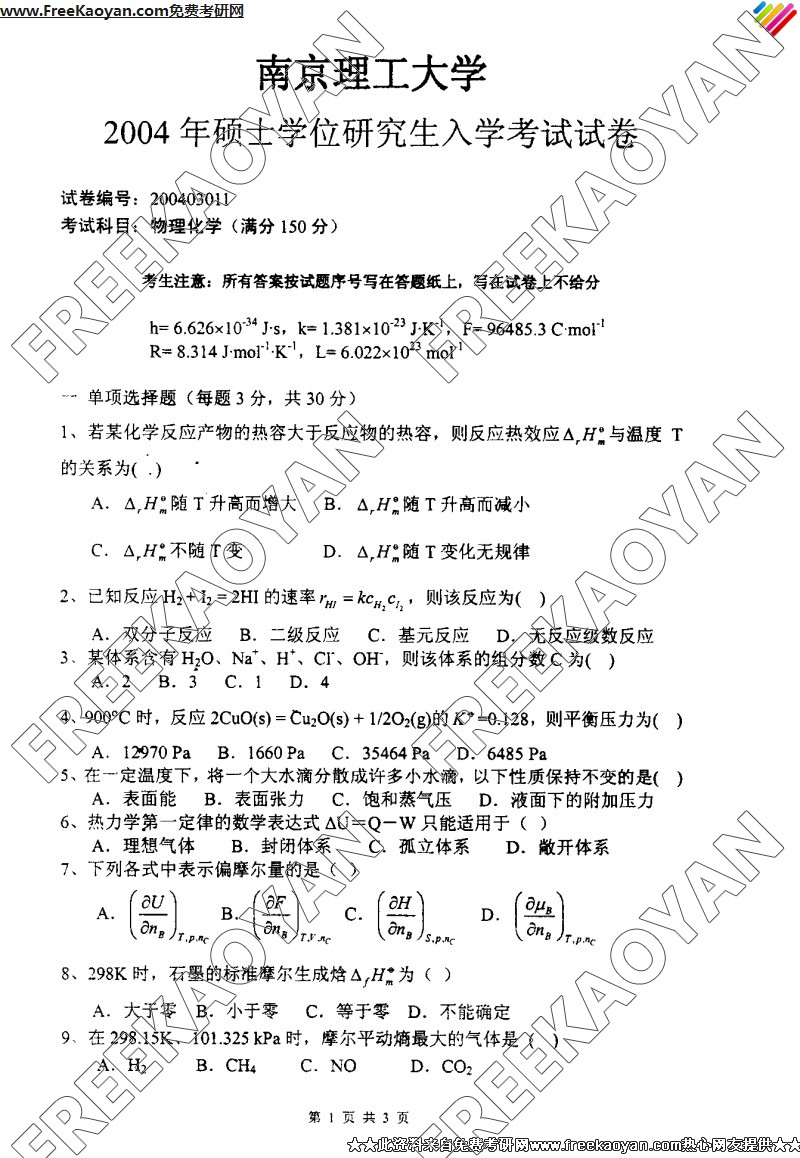 相关话题/南京理工大学 半岛在线注册真题 物理化学